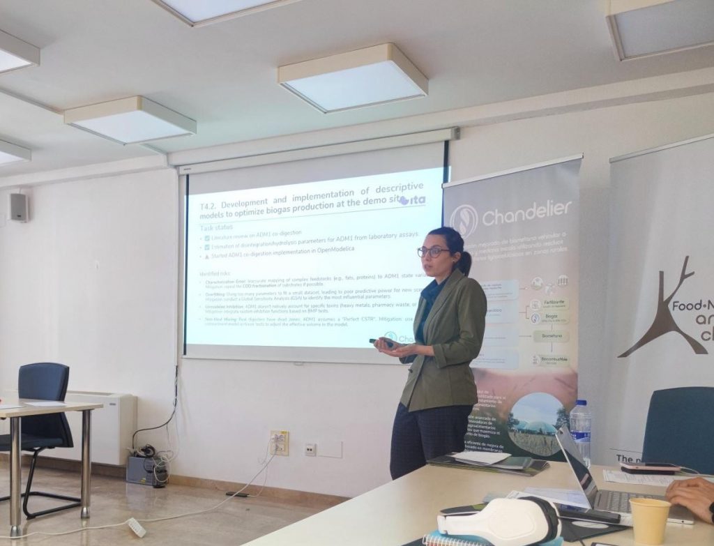 El segundo día estuvo dedicado a la visita a la planta de biogás de Valderrobres, donde el primer demostrador del proyecto se encuentra casi completado. Esta visita fue muy útil para comprobar la implementación y el funcionamiento de los nuevos equipos instalados, ya que una de las tareas de ITA es la simulación numérica de estos procesos.